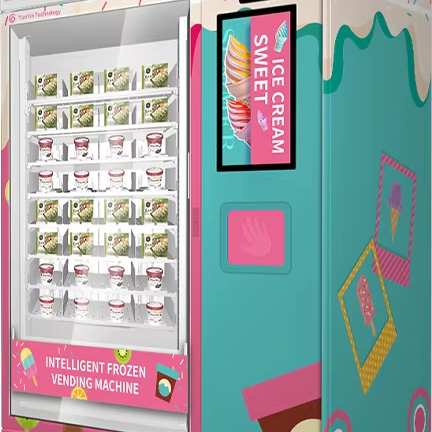 Máquina expendedora automática inteligente de helados de 21,5 pulgadas con sistemas de pago de fichas de código QR de monedas para centros comerciales